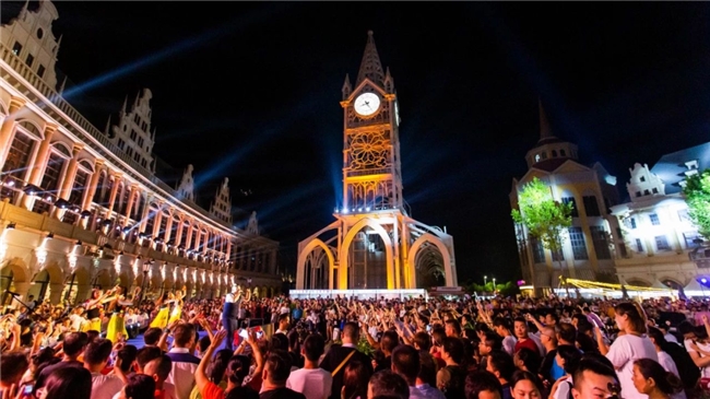 红树林滨海旅游休闲街区位于青岛西海岸新区,坐拥灵山湾一公里海岸线。规划建筑总面积80万平方米,是集休闲度假、时尚艺术、文化创意、影视外景、购物娱乐于一体的中国北方最大综合性滨海休闲度假目的地。街区夜景璀璨,欧式建筑群披上霓虹,光影摇曳生姿,现代浪漫与德式风情在夜色中交融,宛如童话之境。