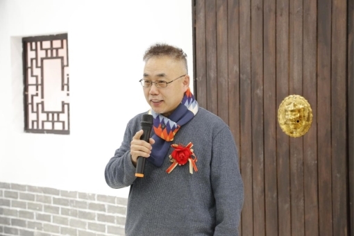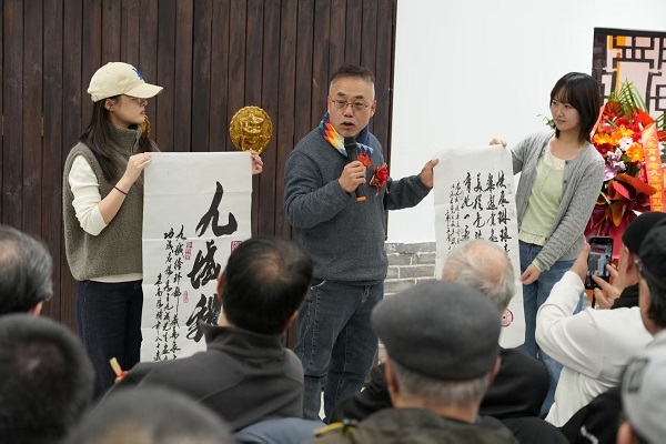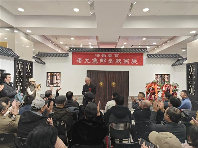 刘佳维高度认可老九的艺术坚守,用“活动不断、创作不断、成果不断”概括其艺术生涯,言语间满是赞赏,同时真挚祝愿画展成功举办。