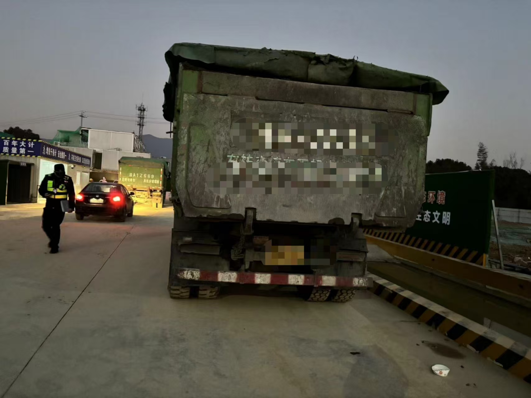 针对渣土运输夜间活跃、路线隐蔽的特点,江南中队联合交通运输、公安交警等部门,在320国道沿线等重点区域设置固定卡口点位,组建夜间专项巡查组,实施轮班值守制度。对过往渣土车严格落实“四必查”机制:运输资质必查、密闭措施必查、行驶路线必查、处置地点必查,确保违规行为无处遁形。截至目前,已出动执法人员10人次,累计检查渣土车30余辆次。