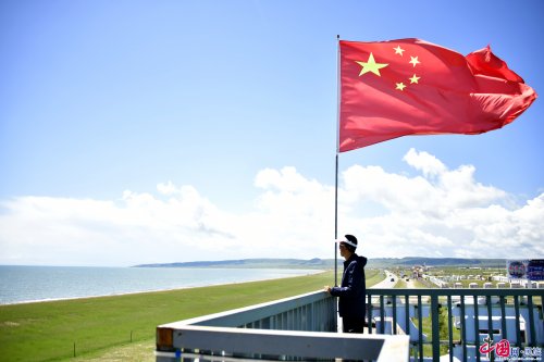 游客在圣泉湾远眺青海湖。蔡得军摄