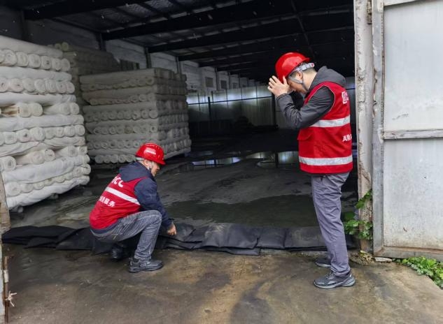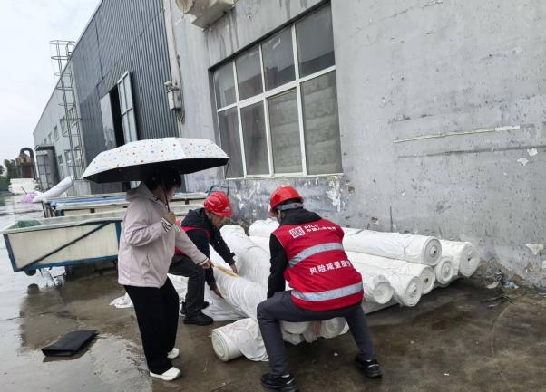 据统计,此次暴雨灾害中,风控人员协助新昇新纺织公司转移重要物资价值超400万元,排查整改风险隐患2项,预估为客户减少损失超100万元。