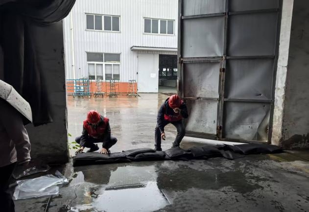 抵达现场后,风控团队立即按照预案分工:一方面协助企业用沙袋封堵仓库门口,铺设防水布隔离地面积水;另一方面协调临时叉车,将库内原材料分批转移至园区高处的备用仓库。经过 1 个多小时的连续奋战,全部原材料均被妥善安置,未出现任何水损情况。除了物资抢运,风控人员还同步开展风险排查与后续保障工作,协助排查出电气线路短路隐患和排水系统堵塞问题共5个,并现场指导企业进行整改。