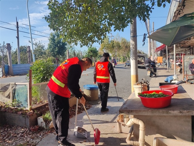 理论学习结束,党员志愿者们换上红马甲迅速 “切换” 到实践模式:村庄道路旁,志愿者手持扫帚、垃圾夹,对店铺周边的白色垃圾进行 “拉网式” 清理;公园区域里,大家分工协作,一边捡拾绿化带内的隐藏垃圾,一边擦拭健身器材、规整宣传展板,让公共设施焕然一新;随后,志愿者们分组入户,拿着分类指南与村民面对面交流,现场演示易腐垃圾投放、可回收物分类技巧,把分类知识送到家门口。