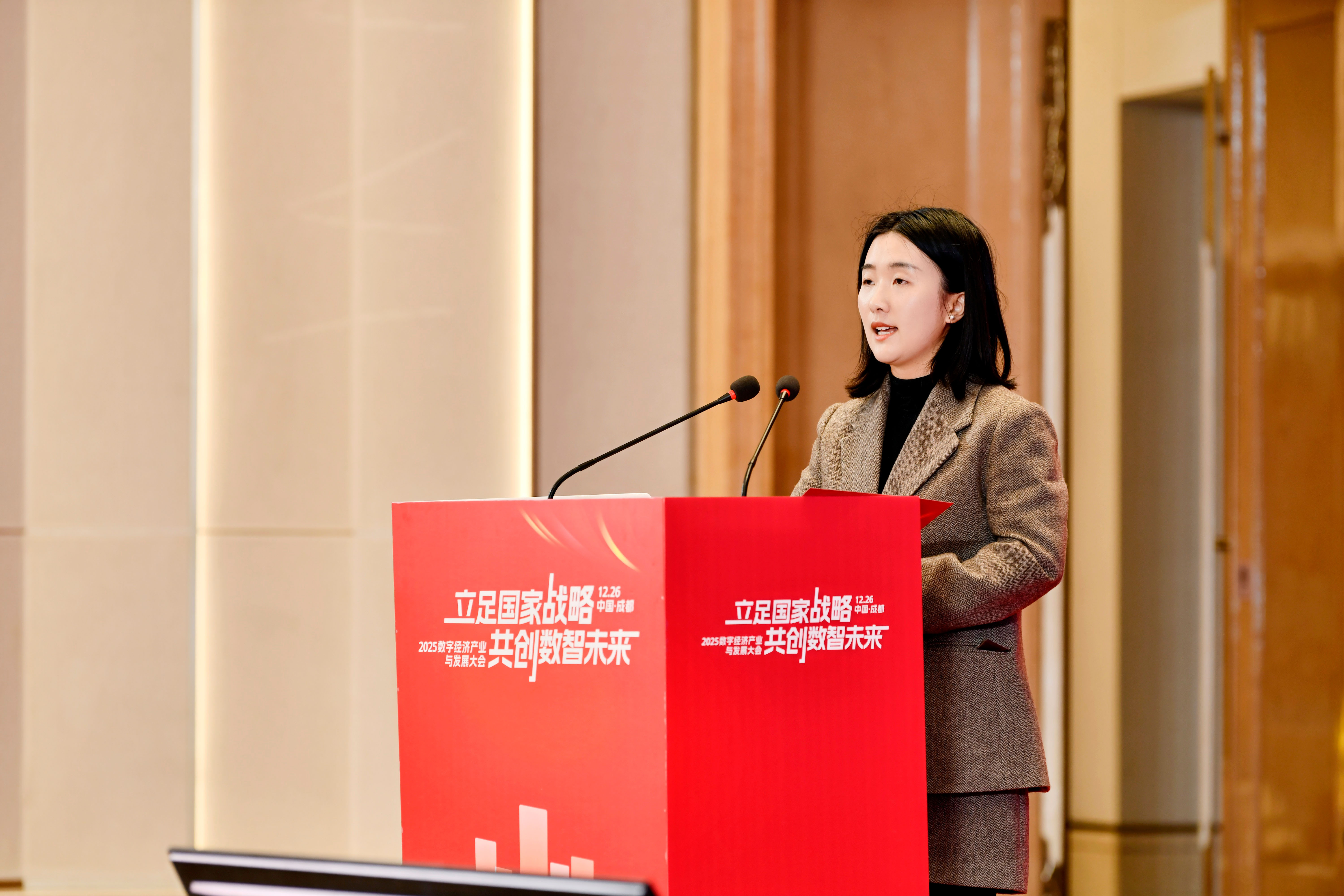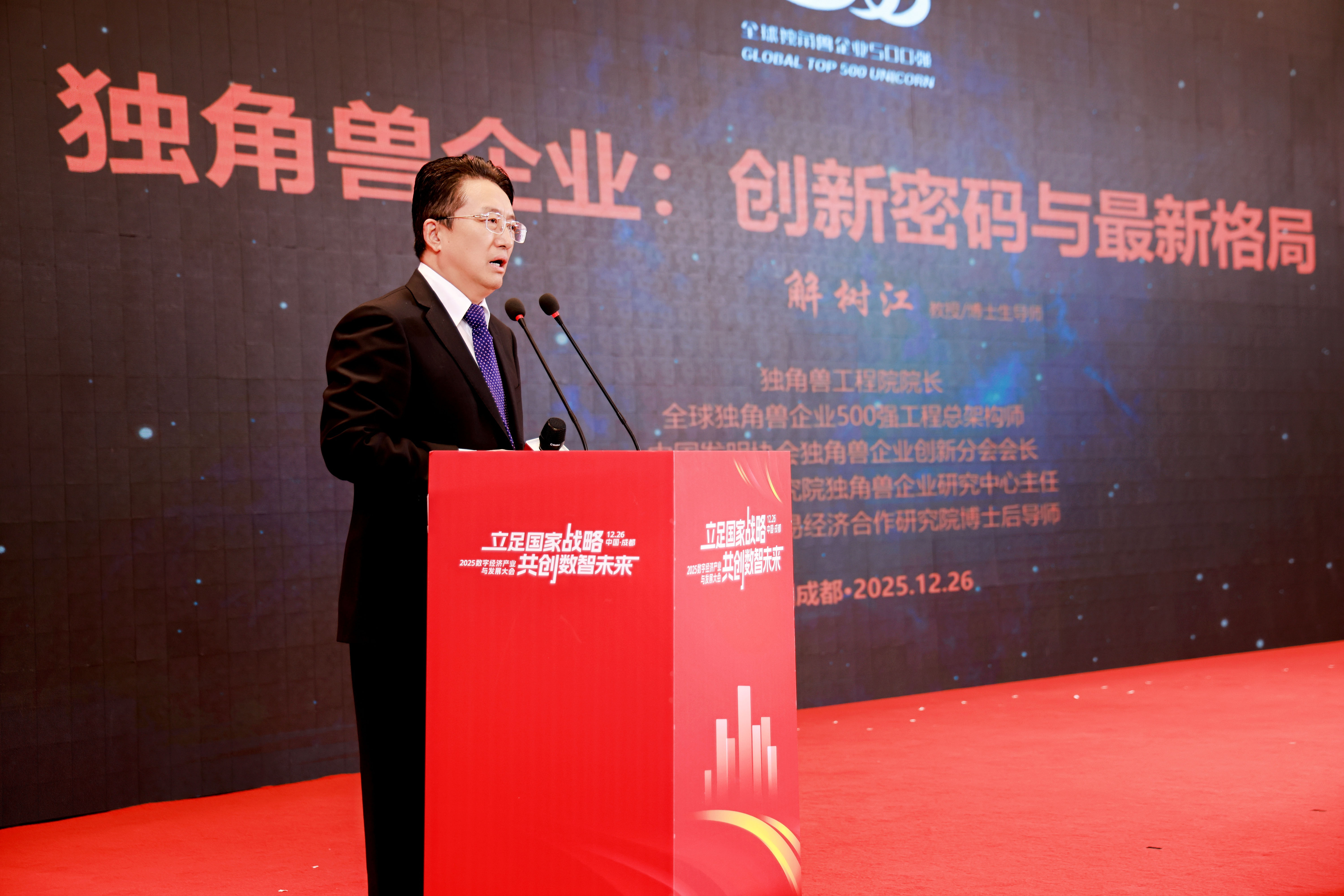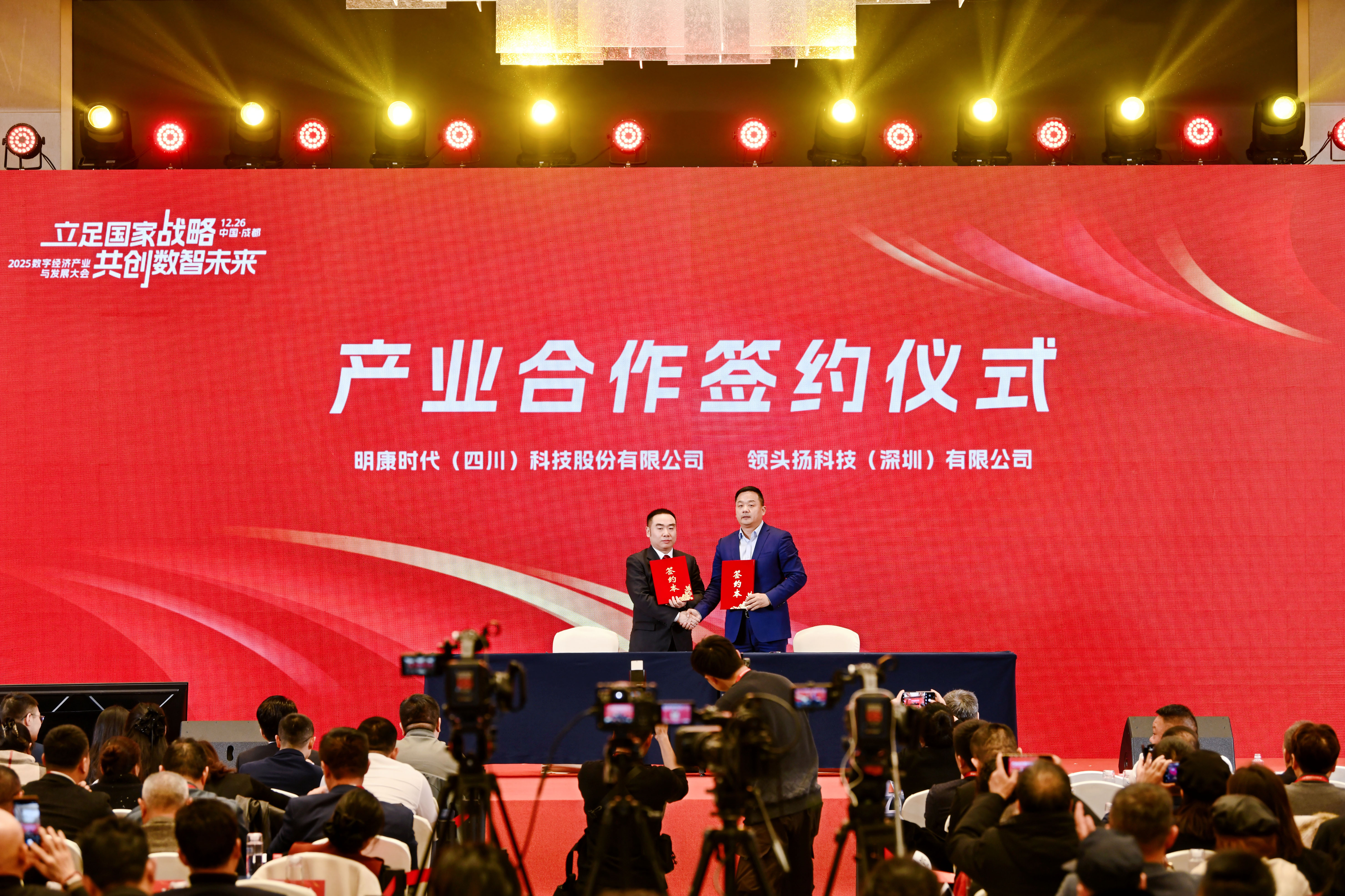 2025年12月26日,“立足国家战略,共创数智未来”2025数字经济产业与发展大会在四川成都举办。大会由北京隐形独角兽信息科技院与清华长三角研究院独角兽企业研究中心联合主办,由明康时代(四川)科技股份有限公司、四川涡流文化传媒有限公司、四川山河壮丽科技服务有限公司三家在数字民生、产业平台管理与文化科技领域的领军企业共同承办。来自政府部门、行业协会、知名企业、投资机构及权威媒体的近500位代表齐聚蓉城,共襄盛举。