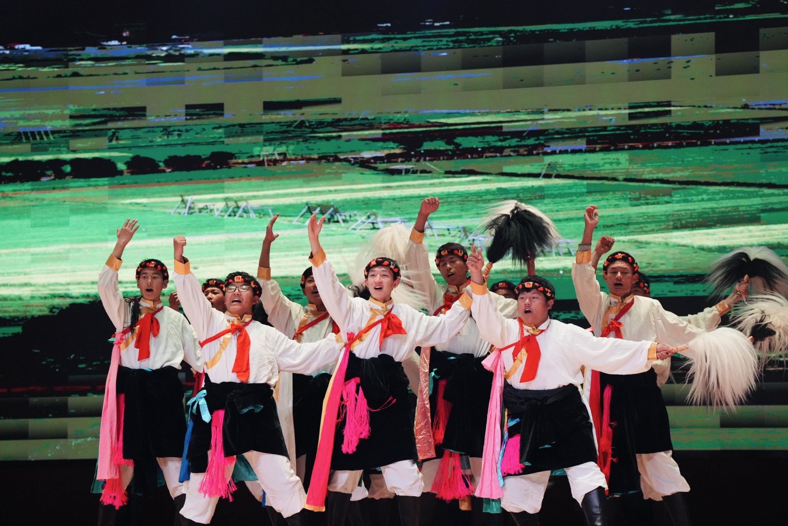 舞台上,国家级非遗“羊拉锅庄”、“斯农热巴”的铿锵鼓点仿佛大地的心跳;屏幕中,雪山、草甸、火塘、人群交错浮现。这是一场音乐会,更是一场关于时间、土地与人的深情对话。