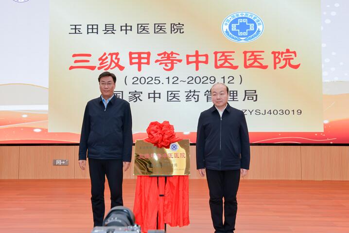 会上,张凯局长、田军威书记共同为玉田县中医医院“三级甲等中医医院”揭牌。这一里程碑事件标志着玉田县中医药服务能力迈上新台阶,获得了行业权威认可,将为区域群众提供更加优质、高效的中医药健康服务。