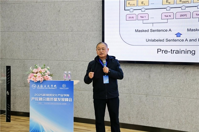 上海立达学院副校长祁焱华发表欢迎辞。他表示,在数字时代浪潮下,新文科建设亟待打破学科壁垒与校企边界,实现技术与人文的深度融合。上海立达学院始终秉持“以人为本、质量立校、服务社会”的办学理念,主动拥抱AI、大数据等新兴技术,致力于文理交叉、数字赋能的转型突破。祁校长强调,产教融合的核心在于开放合作、资源共享与机制创新,唯有如此才能实现教育链、人才链与产业链、创新链的有机衔接,希望以此次峰会为契机,深化与兄弟院校、行业企业的战略合作,打造具有示范意义的产教融合样板。