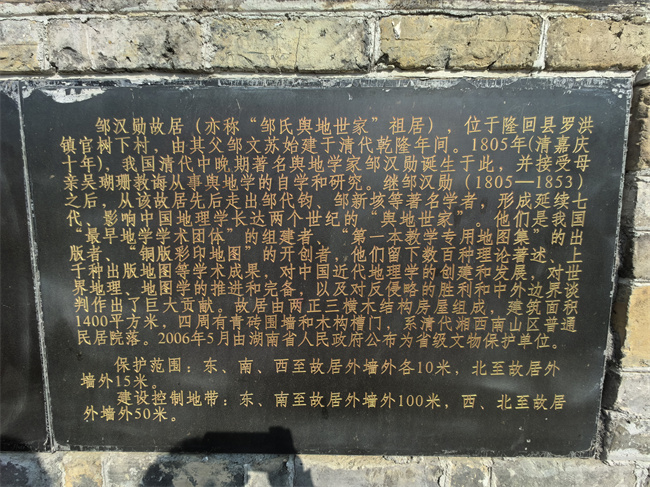 邹汉勋故居始建于清乾隆时期,为省级文物保护单位,是典型的湘西南山区四合院建筑,总占地约6085平方米,现有建筑面积约1400平方米。故居内,邹汉勋编纂的《宝庆府志》复刻本、罗盘等测绘工具原件及家族舆地学著作手稿集中展出,系统展现其“西南方修志第一人”的学术成就与邹氏七代舆地世家的传承脉络。