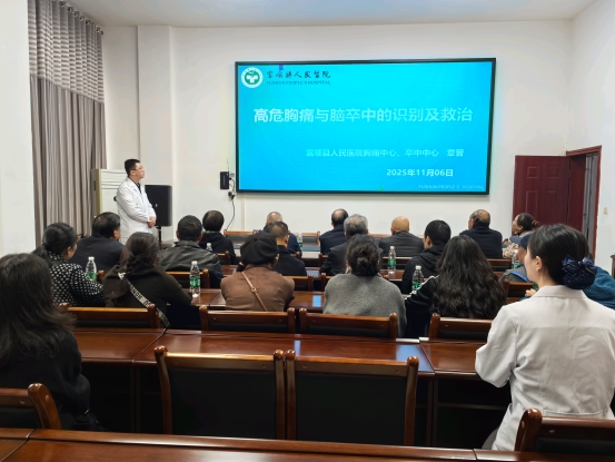 此次培训特邀富顺县人民医院心内科主任章晋、体检中心主任杨艳华担任讲师,兼顾专业性与实用性。课堂上,讲师通过图文并茂的PPT课件,结合真实案例深入浅出地讲解心肺复苏的重要性、适用场景及“黄金救援4分钟”的关键原理,重点针对老年人常见意外的识别与应对技巧进行详细拆解,内容详实、重点突出,让在场学员快速掌握核心理论。