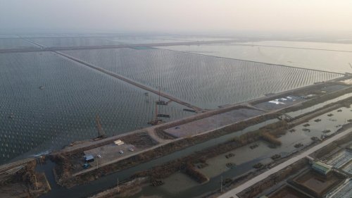 锻造新质生产力,激活能源发展新动能。同属盐城市的华电盐城响水洪港390MW渔光互补光伏发电项目探索“板上发电、板下养殖”的绿色协同模式,目前光伏区域正在进行桩基施工以及支架、组件安装准备工作。