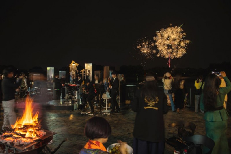 本次项目最具创新性的,是将传统开幕式转化为一个“沉浸式艺术流程”,完成了一场成功的传播实验。从“艺启新章”环节艺术家陪同观众深入解读作品,到“乐韵雅集”以西洋弦乐重构东方意象;从“薪火传艺”中师生共举篝火完成精神传递,到“烟火颂艺”时礼炮在夜空绽放出宛若汉字笔画的绚烂光影……音乐、光影、仪式、味觉、烟火多维联动,将观展、演出、社交与公共教育完美整合。这场跨界盛宴,不仅重塑了艺术展览的打开方式,更让美育自然流淌,融入节日与公共生活,实现了艺术能量的最大化传播与共鸣。