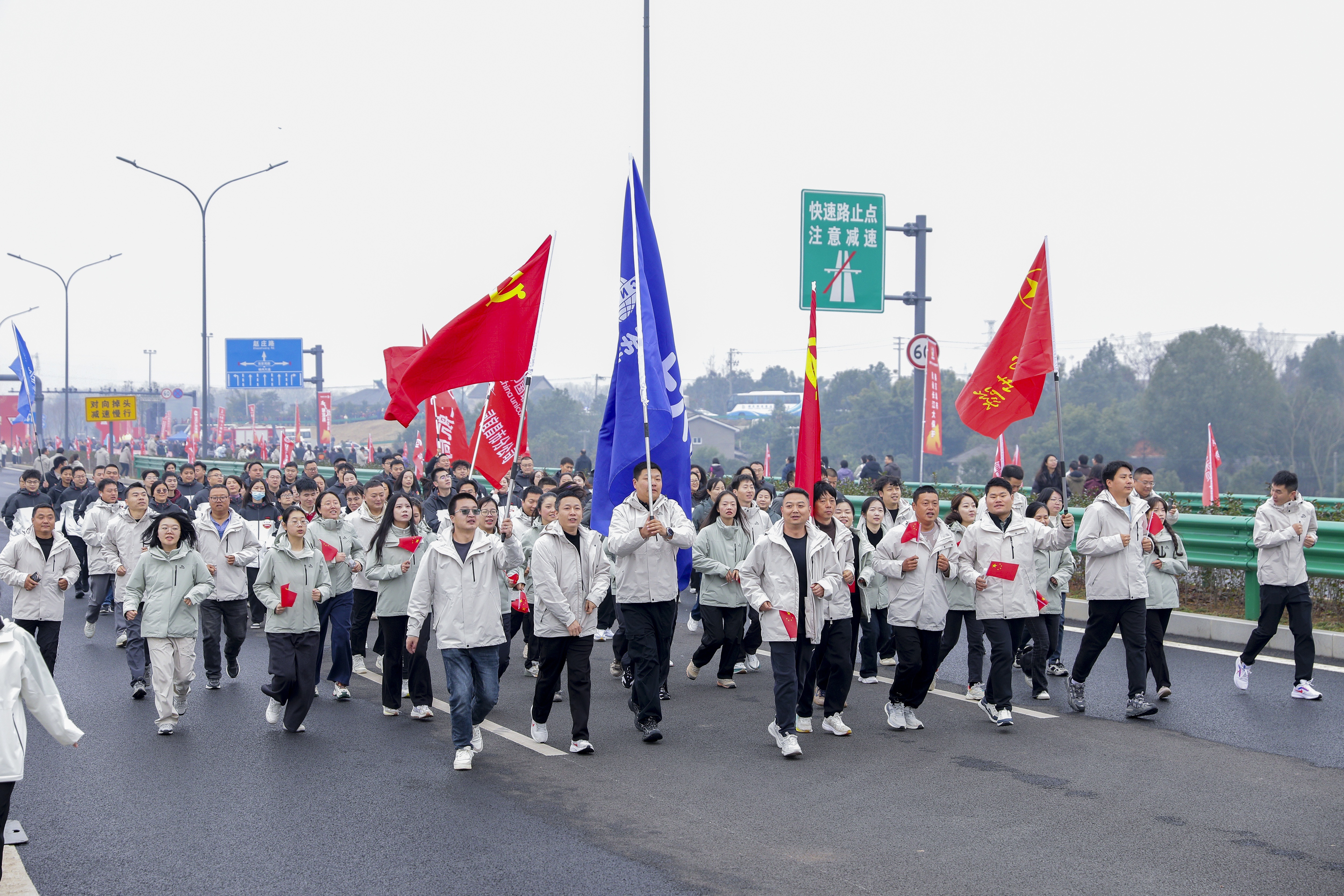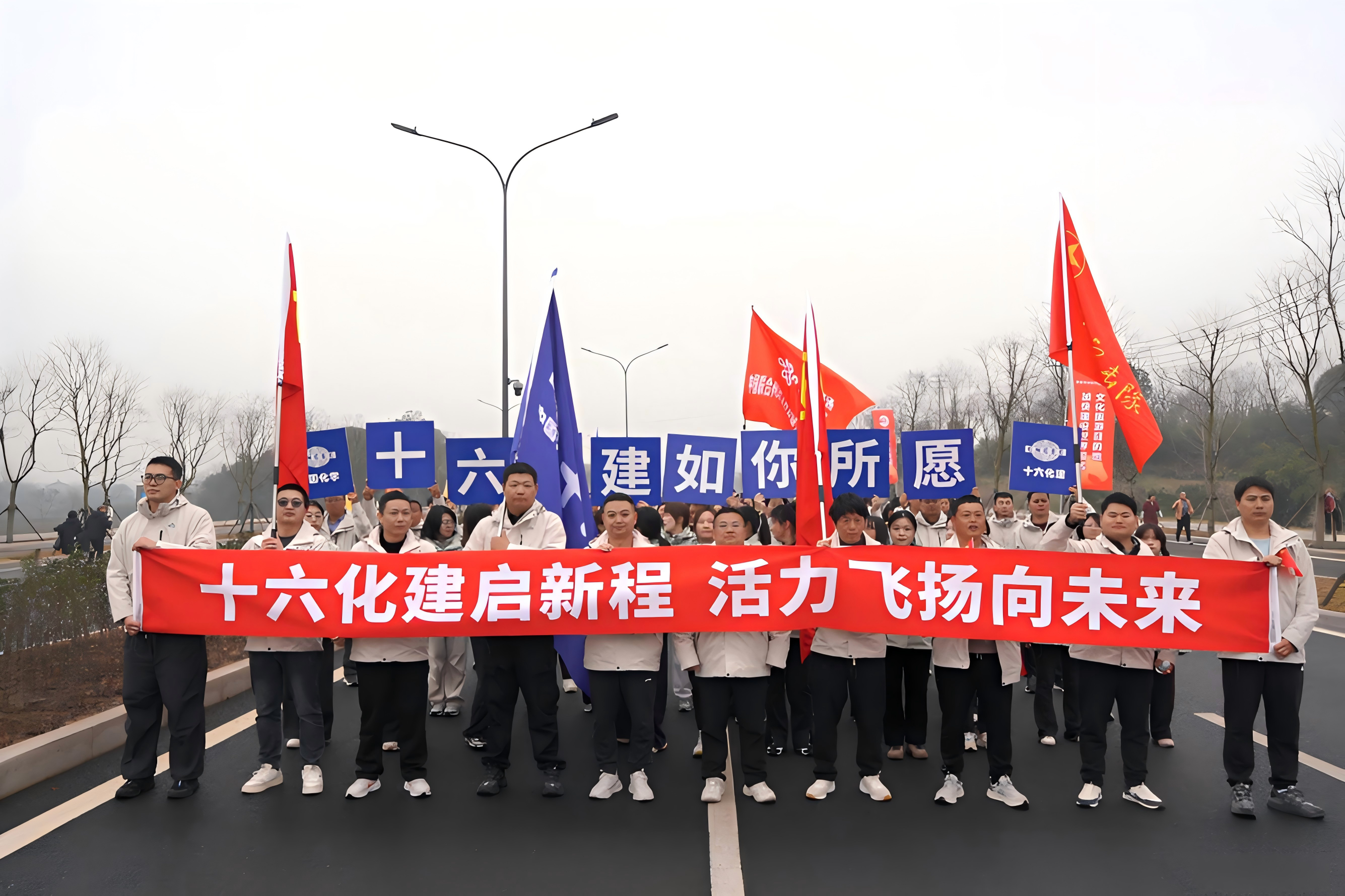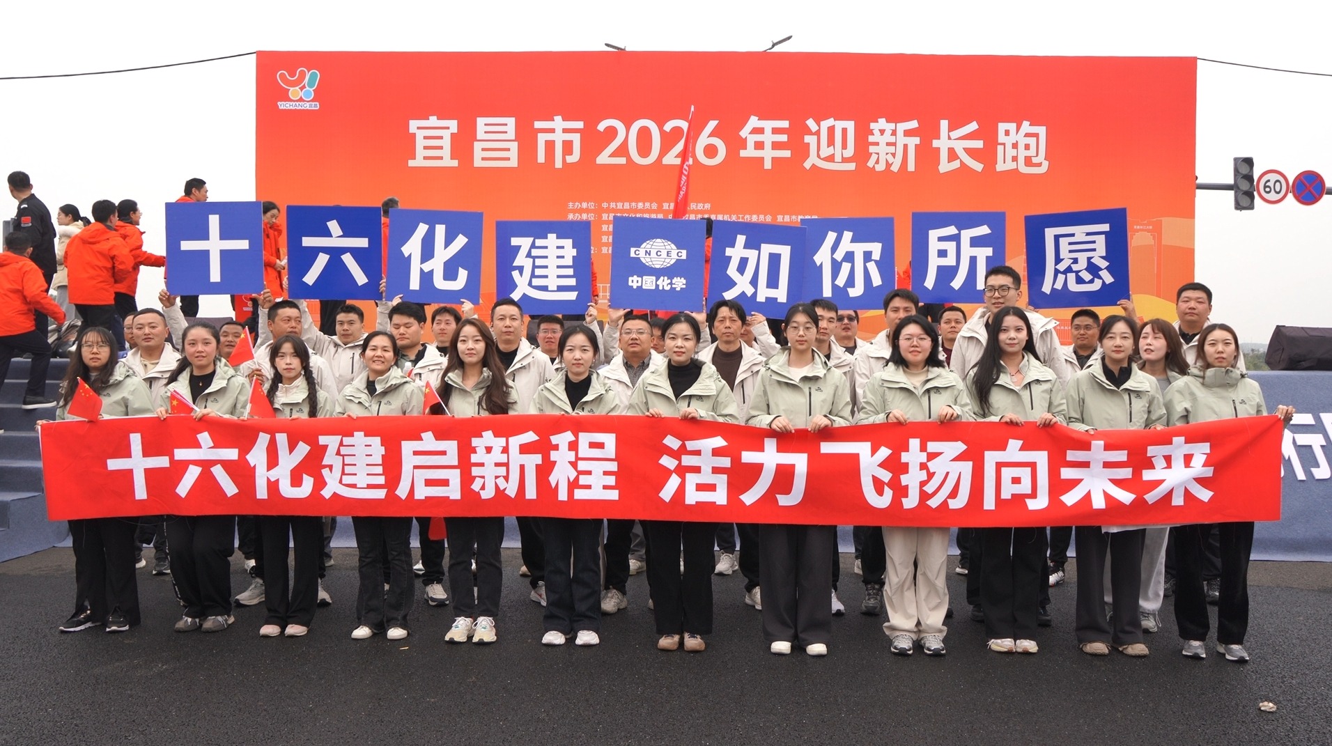 12月30日上午,宜昌市2026年迎新长跑在中国化学工程十六化建承建的峡州大道三期市政工程路段活力开跑,来自全市各机关、企事业单位的近万名参与者,以奔跑的方式迎接即将到来的2026年。其中,由十六化建员工组成的50人方阵,步伐整齐、精神饱满,以“十六化建启新程,活力飞扬向未来”的嘹亮口号,展现了企业奋发向上的精神风貌。