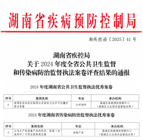 近日,湖南省疾控局传来喜讯。在全省卫生监督执法案卷评查工作中,鼎城区疾控中心(卫监局)代表常德市选送的公共场所卫生监督、消毒产品卫生监督两起案例,经严格评审,从全省14个市州报送的46份案卷中脱颖而出,双双获评“全省优秀典型执法案例”称号。这是该中心连续三年获此殊荣。