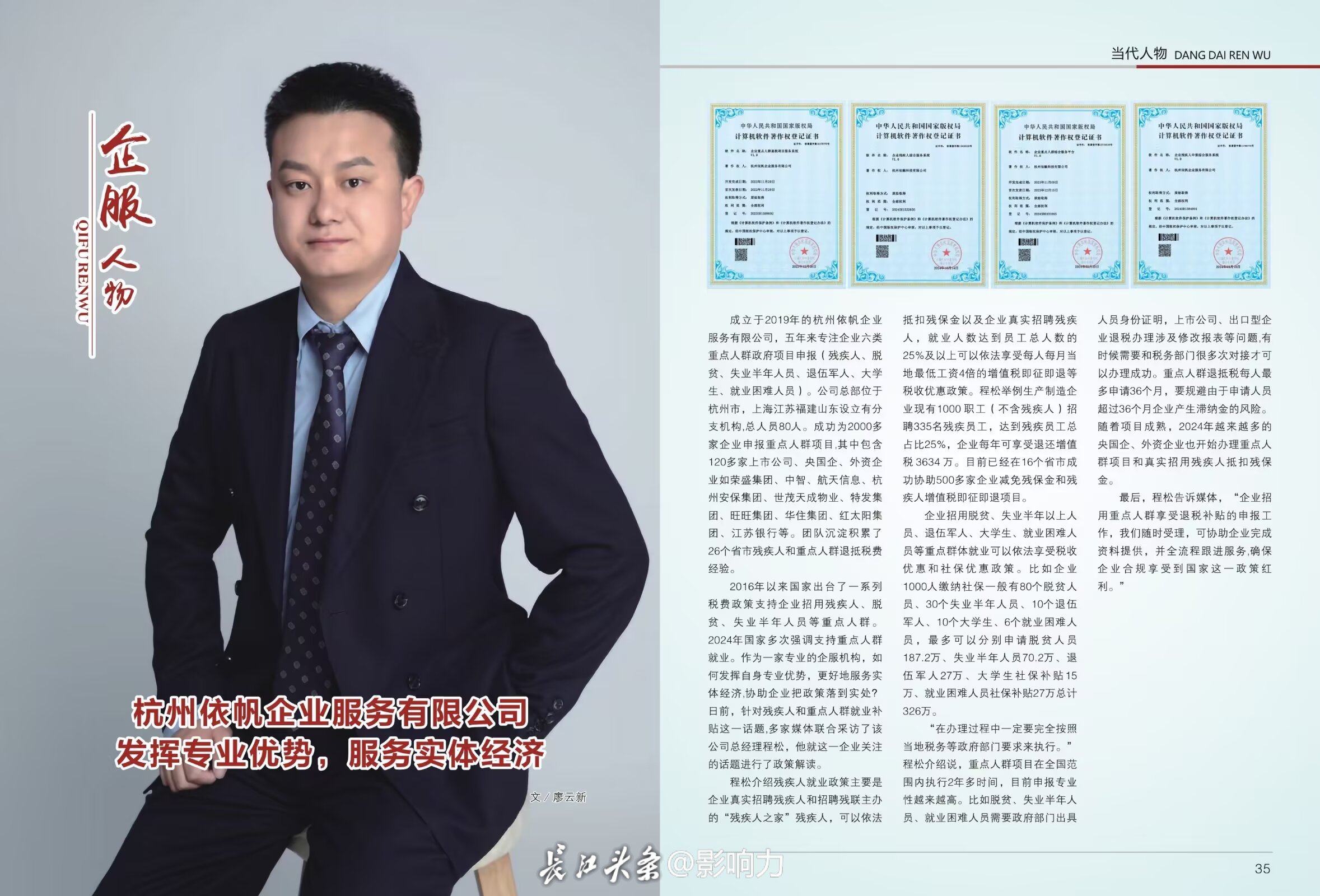在2026年的岁首,经严格评审刚刚掲晓的2025当代人物网“年度创业之星”的榜单上,又多了一个来自杭州的名字——程松。这位杭州依帆企业服务有限公司的创始人、总经理,用八年时间专注企业六类重点人群政府项目申报和定向招聘,将复杂的政策文件转化为企业看得懂、用得上的“政策导航”,成功服务3000余家企业,其中包括200多家央国企和上市公司。他将一家从零起步的小微企业,打造成了华东地区企业服务领域的标杆。荣誉背后,是一条充满挑战与坚持的创业之路。