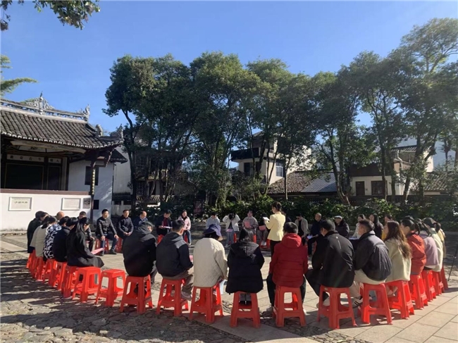 沙田戏台前的“书润初心 逐梦新程”读书分享活动。(罗文芳 摄)