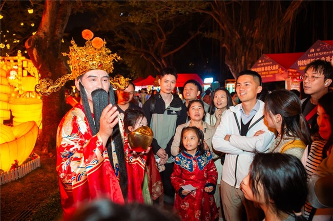 同时,景区每日推出40余项非遗体验与民俗演艺,拓印、内画、剪影等非遗体验让无数游客流连忘返,藏族《弦子舞》非遗歌舞、《陕北说书》民间曲艺等表演更是精彩连连。夜幕降临后,53万㎡非遗灯海点亮园区,40余组大型非遗主题灯组与故宫文化IP“灯光里的中国”灯组共同构成新年光影盛宴,使传统文化以更年轻、更具视觉张力的方式被游客重新感知。