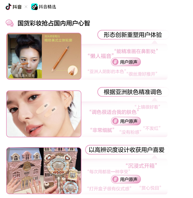 白皮书中揭晓的2025抖音美妆年度宝藏彩妆——年度宝藏底妆、眼妆、面部彩妆、唇妆四大榜单,正是这一价值转向的集中体现。