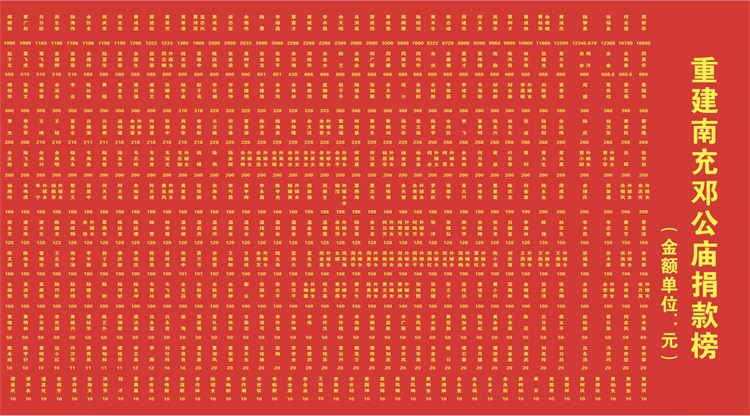 癸卯年秋,周耀华、余德继、黄燊等乡贤再度发起重建倡议,成立重建筹委会,广纳众议,重新踏勘风水,抬高庙基,议定重建大计。乙巳年初,重建倡捐启动,乡情涌动、四方响应:耆老慷慨解囊,青壮踊跃出力,旅居他乡者亦寄资相助。短短数月间,善款累计八十余万元,捐资者逾千人,充分彰显了南充村民敬祖睦邻、守望相助的深厚情谊。