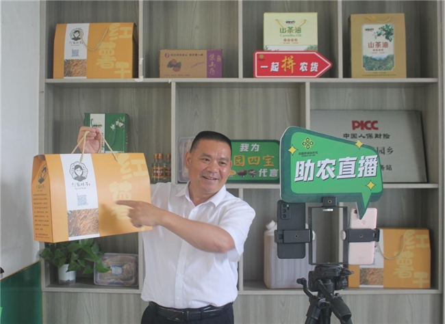 创新“互联网+农特产品+品牌”营销模式,构建“线上线下”融合销售网络。线上入驻淘宝、拼多多等主流电商平台,培育“村干部直播团”“农户带货队”等本土直播力量,开展直播带货技能培训12场,培育带货能手30余人;线下与助农商超、县供销社及帮扶单位建立长期合作,2024年全乡实现鲜红薯销售200万斤、红薯干销售300万斤,产品远销广东、福建等10余个省份。
