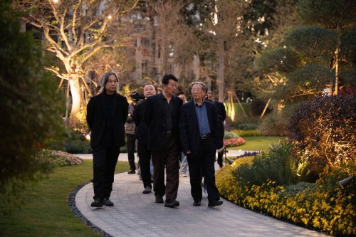 在未来生活艺术研究院院长、香江1号艺术总顾问、香江书画院院长翟美卿的陪同下,艺术家们依次参观了香江1号的艺术展览、“未来之眼”雕塑、整体空间规划、名车博物馆以及莫奈花园等代表性场景。从室内陈设到户外景观,从经典收藏到自然园林,项目通过有机整合的艺术布局,构建出一幅连贯而流动的审美画卷,让艺术脱离单一的视觉范畴,融入行走、感知与体验的全过程。
