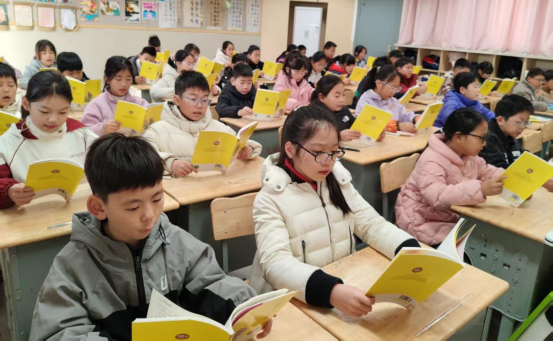 晨读时分,琅琅书声如春潮涌动;午间阅读,静谧时光里只有书页翻动的声音;课后服务,老师们化身引路人,带领孩子们在字里行间探寻宝藏。孩子们用专属的《悦读本》,记录着阅读的轨迹:今日读了什么,被哪句话触动,又产生了怎样的思考。阅读不再是单向的接受,而成为一场跨越时空的对话。