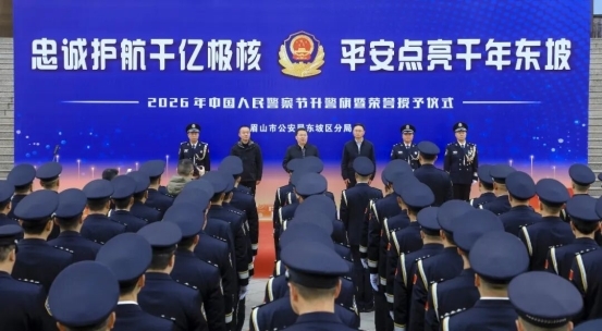 1月10日,在第六个中国人民警察节到来之际,眉山市公安局东坡区分局隆重举行升警旗暨荣誉授予仪式。活动以“忠诚护航千亿极核,平安点亮千年东坡”为主题,充分展现了东坡公安在新时代新征程上的忠诚本色与使命担当。