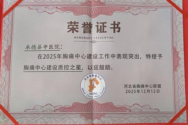 以质量见担当:河北承德县中医院胸痛中心荣获省级荣誉