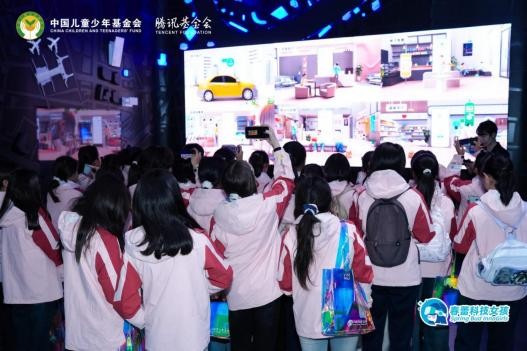 研学的核心科技体验从腾讯滨江大厦开始。当女孩们步入核心展厅,目光瞬间被充满未来感的科技展陈点亮。