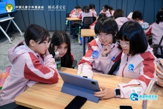 2024年,中国儿童少年基金会与腾讯公益慈善基金会联合启动“春蕾科技女孩”项目新周期,深化数字教育与科学教育领域合作。项目聚焦科技潜力突出的初高中春蕾女孩,开展涵盖前沿科技、文化自信等内容的科技营地项目制学习;针对初中阶段春蕾女孩,构建“人工智能普惠课—Python培优课—白名单赛事课”三级课程培养体系。同时,为女孩们搭建全国赛事参与、与科学家及优秀女性科技工作者交流共创的平台,持续提升其科技素养与数字技能,助力她们在科技领域长远发展。