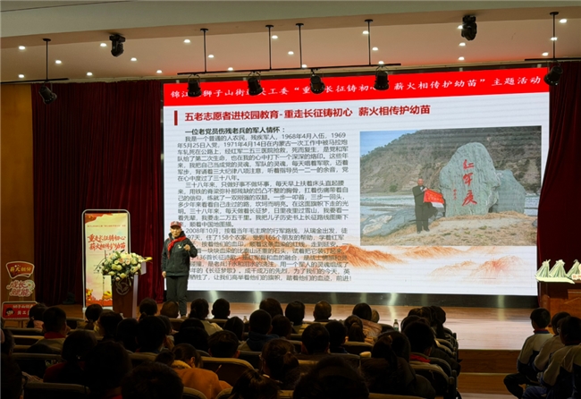 在成都市菱窠路小学,一场别开生面的“红色之旅”正在悄然上演。日前,由狮子山街道、狮子山街道关工委主办,成都爬山虎社区工作服务中心承办的“重走长征铸初心,薪火相传护幼苗”五老志愿者进校园活动,如同一股温暖的红色春潮,涌进了菱窠路小学的每一个角落,让师生们沉浸其中,感受着红色文化的独特魅力。