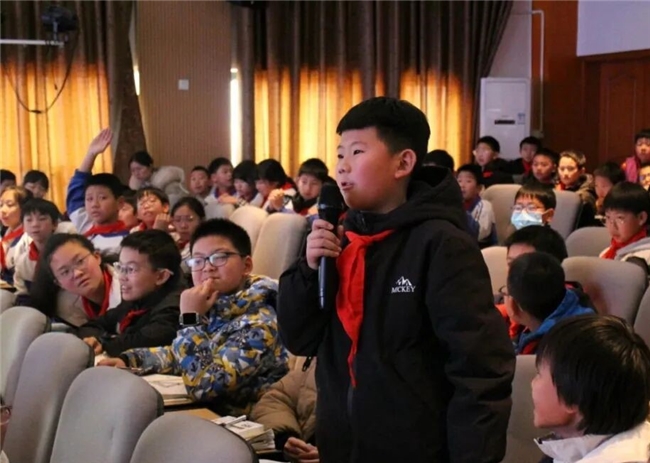 互动问答环节更是将活动推向了高潮。同学们踊跃举手,积极提问,他们的问题充满了好奇与思考。“高爷爷,您在重走长征路时遇到的最大困难是什么?您是怎么克服的?”“创作《长征梦歌》时,哪些经历给了您最多灵感?”高秀林爷爷耐心倾听每一个问题,并结合自身经历娓娓道来,用朴实的语言解答疑惑,同时送上“不畏困难、坚持到底”的成长寄语。面对面的深度交流,让同学们对长征精神的内涵有了更深刻的理解,也激发了他们传承红色基因、争做时代新人的热情。