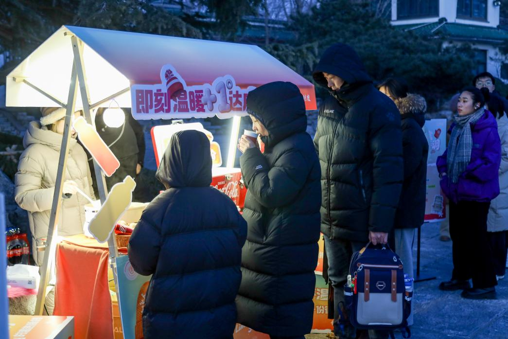 人们被那些披着毛茸茸“外衣”的树木与长凳吸引,纷纷停下脚步拍照打卡。而在打卡点的另一侧,中粮可口可乐的工作人员正现场制作着一杯杯“热饮盲盒”——每一杯都以随机搭配的温暖配方,为这个冬日埋下一份味觉的惊喜。当市民游客接过这杯盲选的热饮,轻轻掀开杯盖的瞬间,一缕白汽裹着香气袅袅升起,每一口都是未曾预料的温暖相遇。人们捧在手里的,不再只是一杯热饮,而是一份可分享的冬日故事——每个人既是温暖的体验者,也成为了这座城市温情的记录者与传递者。
