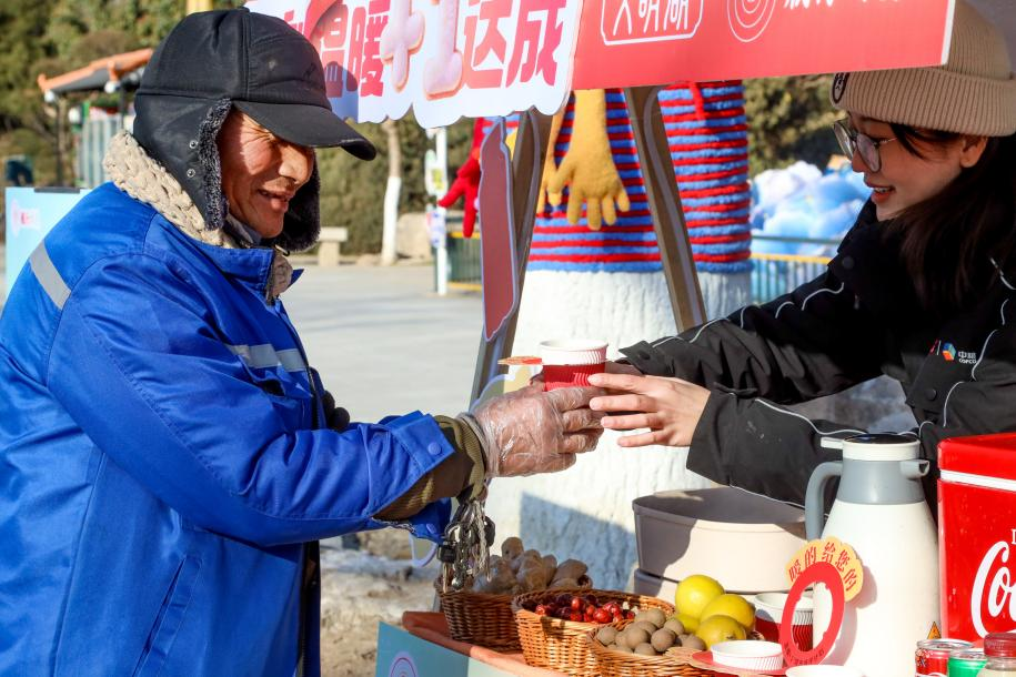 在大明湖畔的“温暖驿站”,工作人员正将一杯杯冒着热气的生姜可口可乐,递到园区内户外工作者的手中。“趁热喝,暖暖身子。”伴随着这样的轻声叮嘱,温热的饮料从掌心传递到心里。一位园林师傅捧着热饮,低头吹了吹热气,喝下一口后眉眼舒展:“甜里带着姜的暖,一下就从喉咙热到胃里了。”在这往来递送之间,冬日的寒意被轻轻驱散,一种朴素的关怀自然地流动着——原来温暖,有时候就藏在一杯特意准备的热饮里,藏在一句平常的问候中。