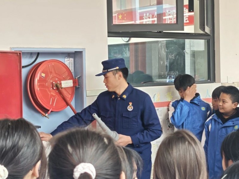 峨眉大队深入大为镇,结合校园火灾案例,通过情景模拟教会学生如何快速识别隐患、正确自救。