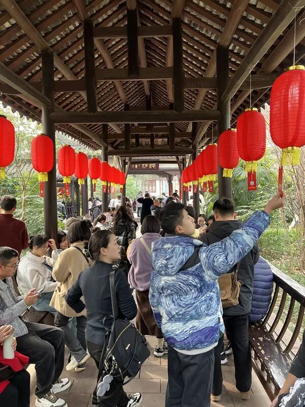 当天下午,三苏祠特别设置了趣味游园活动。可在馆内探访特定NPC,通过对句、解谜等互动任务,赢取文创纪念品。