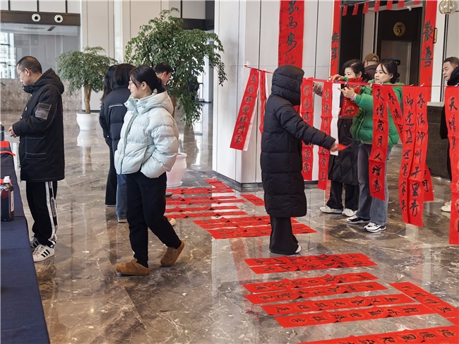 “马上就要回老家过年了,能拿到书法家亲笔写的春联,特别有仪式感!”来自安徽的务工人员李师傅小心翼翼地捧着刚领到的春联,脸上满是喜悦。他告诉记者,准备把这副“马跃神州添瑞气,春回大地沐祥光”的春联贴在老家大门上,让这份来自绍兴的温暖与祝福陪伴全家过年。活动现场,不少企业负责人也对此次活动点赞:“书法进企业不仅为员工送上了新春祝福,更丰富了企业文化生活,让大家在忙碌的年终感受到了传统文化的魅力和社会的关爱。”