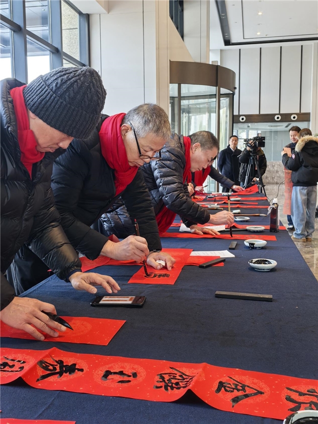 “骏马奔腾开锦绣,春风浩荡展宏图”“龙马精神昭日月,鲲鹏志向耀山河”……连日来,尽管古城绍兴的室外气温已逼近零度以下,但越城区鑫洲国际大厦内却暖意融融、墨香四溢。绍兴市越城区硬笔书法协会“永远听党话·笔墨润万家”书法进企送福活动在此热烈举行,9位书法名家挥毫泼墨,为大厦内70余家企业的返乡务工人员送上饱含新春祝福与文化温度的手写春联和福字,让传统年味在笔墨流转间浸润人心。