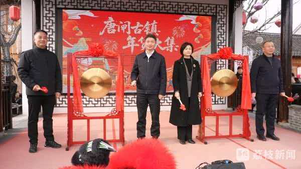2月1日,第二届南通崇川唐闸年货大集在唐闸北市景区开集。崇川区委副书记、区长吴佳华,区委常委、宣传部部长杨晶晶,崇川区商旅集团董事长张飞,以及崇川区总工会党组书记、主席张柏良共同鸣锣开市。