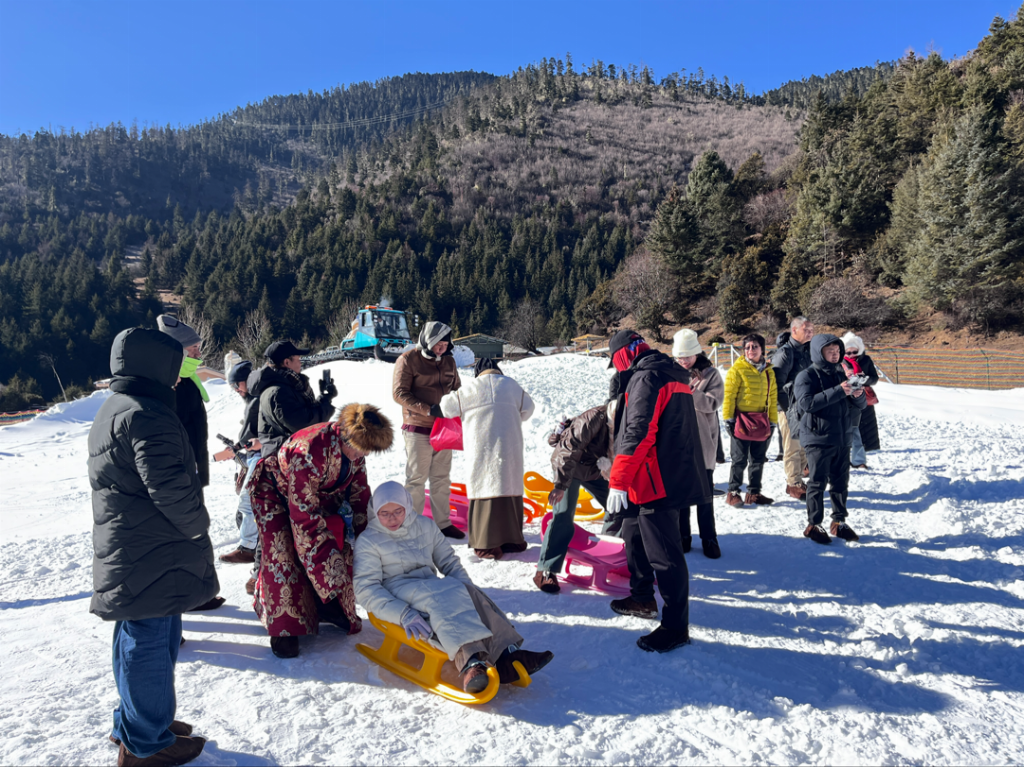 在香格里拉普达措,考察团实地感受高原冬季环境,并体验藏族服饰,在冬季白雪画卷中留下了最具民族风情的影像。作为冬季旅游的重点考察项目,普达措嬉雪场为来自热带地区的考察团提供了雪圈、雪地坦克等冰雪活动。旅行商们纷纷惊叹于云南在低纬度地区竟拥有如此优质的滑雪资源,其“暖阳下玩雪、温和气候中赏雪”的独特体验,成为跨境旅游产品开发的重要参考。