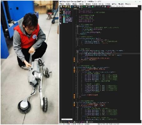 “自动化是连接硬件与软件的桥梁,能让生产更高效、生活更便捷。”在艾默斯(济南)机器人科技有限公司实践期间,郑嘉琦同学在企业负责人车现发的带领下,深度参与机器人电路调试、程序编写等核心工作。他手持万用表精准检测电路板电压、电阻等关键参数,将课堂理论知识转化为扎实的实操能力,自主用C语言完成机器狗运动控制程序并成功运行。“作为在校学生,能将硬件调试与软件编程结合得如此扎实,这份实践成果远超预期。”车现发老师给予高度评价。