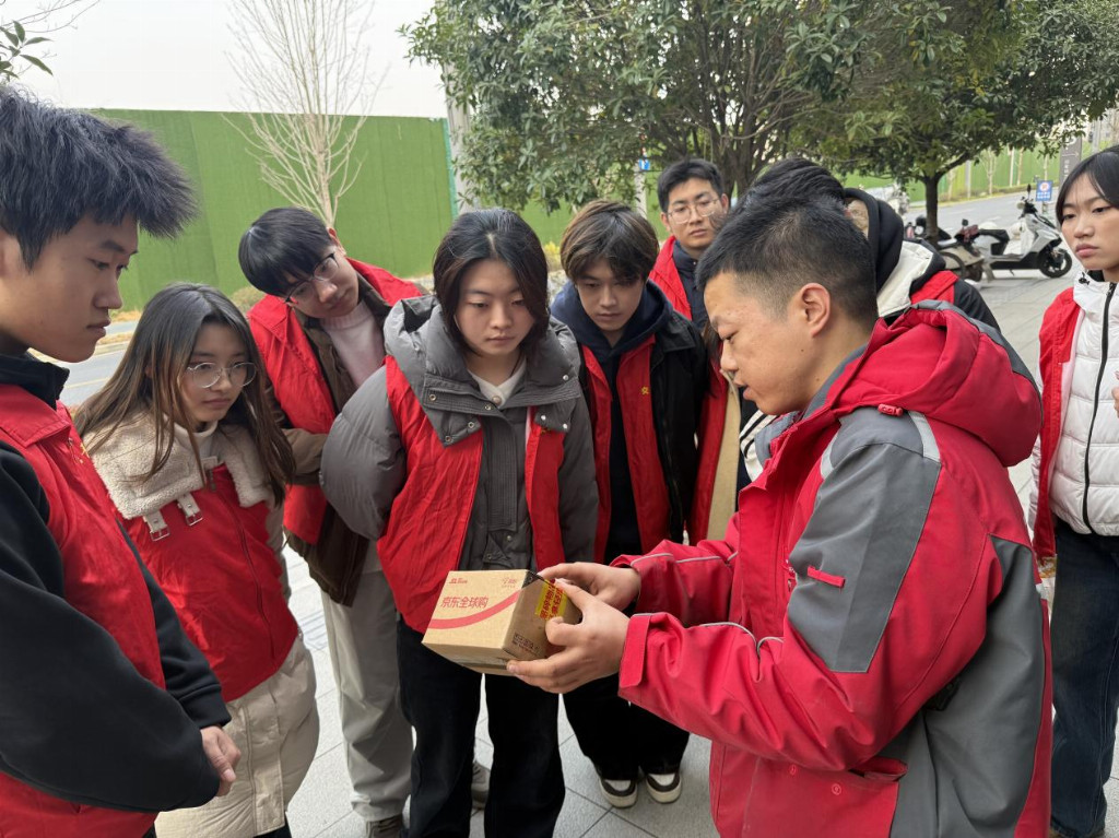 针对老年居民取件不便、年货包裹体积过大、重物搬运困难等问题,成员们主动提供“上门取件、送货到家、拆箱检查、用法讲解”等服务,用真诚与热情赢得居民好评。此次社区揽派实践,不仅锻炼了队员们的沟通协调能力和群众工作能力,更让大家深刻体会到基层服务的价值意义。