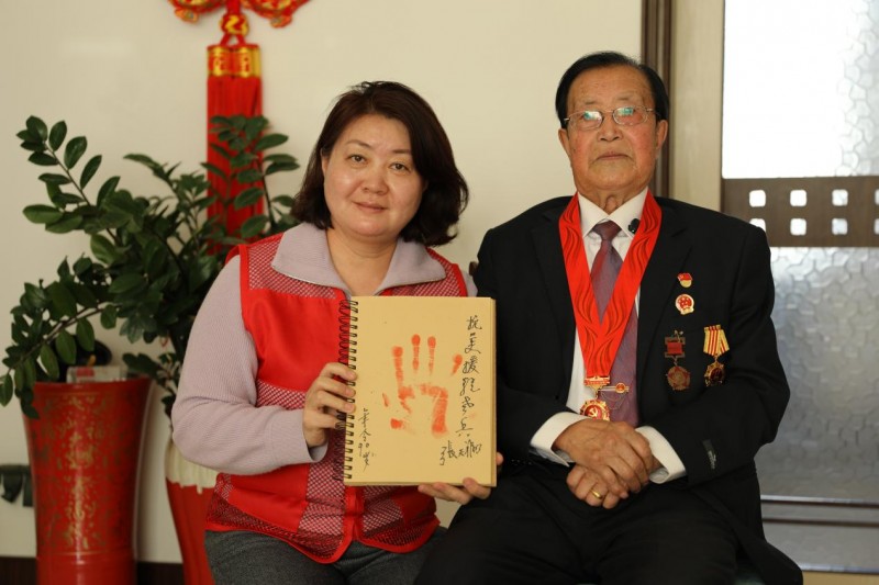 集宁师范学院追星公益社团王健与抗美援朝老英雄张天福的温情瞬间