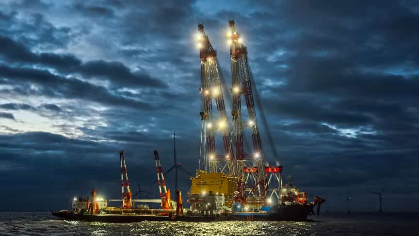 在最关键的海上吊装环节,面对数据舱入水的巨大浮力变化以及导管架支腿插尖需插入海底钢管桩、两者间隙仅0.18米、偏差必须控制在10厘米以内的极高精度要求,项目团队依托“三航风范号”起重船的卓越性能,在GPS与专业定位软件的引导下,由技术负责人现场统一调度指挥,将下放速度严格控制在每分钟0.1米。