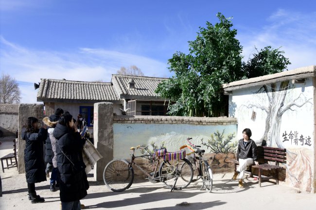 游客在柯鲁柯镇沉浸式影视文旅基地内拍照打卡。蔡得军摄