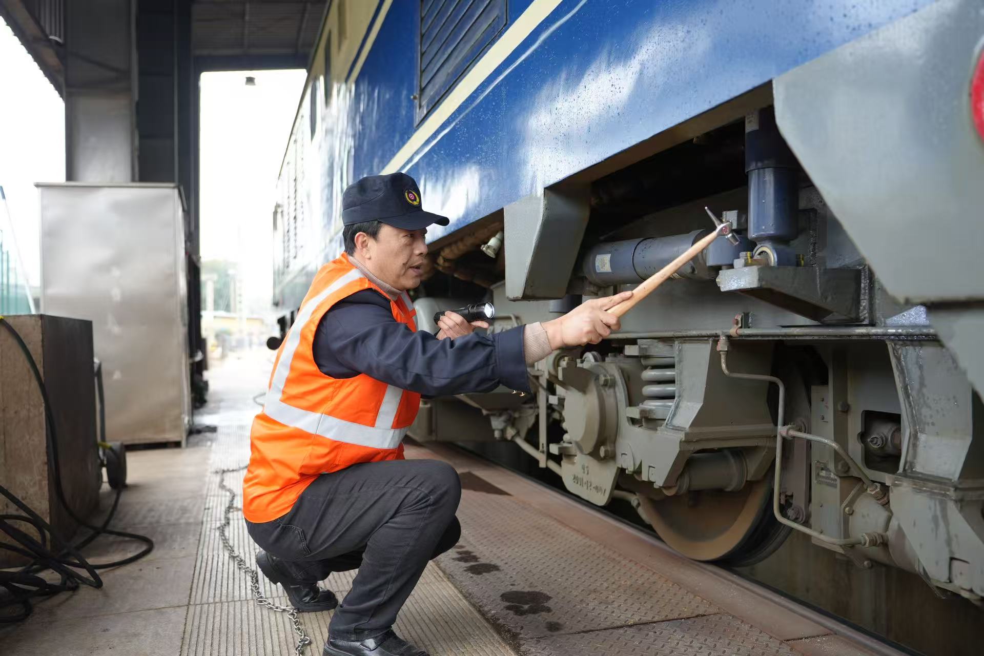 内燃机车的轰鸣,是钟震职业生涯的背景音。他清楚记得,2008年冰灾时,顶着寒风趴在车底敲冰,做好机车整备,担任除冰扫雪任务;2016年特大暴雨中,凭经验听出柴油机异响,果断在前方站停车排障,确保了行车安全。年轻司机总说“钟师傅的耳朵比仪器还灵”,他却摆摆手:“军舰上听轮机声练出来的,哪是什么天赋。”