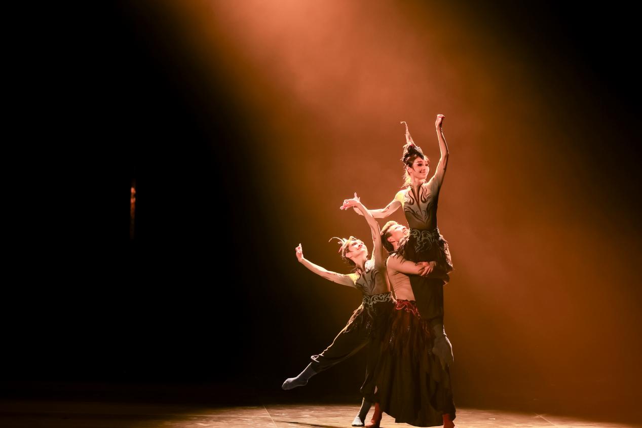 舞蹈《双燕归脊》,深挖闽南戏曲舞蹈精髓,舞蹈演员以“螃蟹手”和“蝶步”这两个闽南戏曲舞蹈动作特征表现“双燕归脊”的动态构图,借助诗意化的舞台造境,在舞台上演绎燕尾脊飞檐翘角的灵动,由形传神,慰藉海内外闽籍儿女的思乡之情。