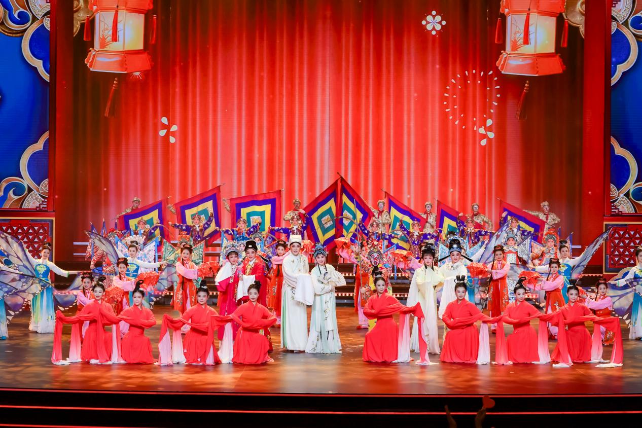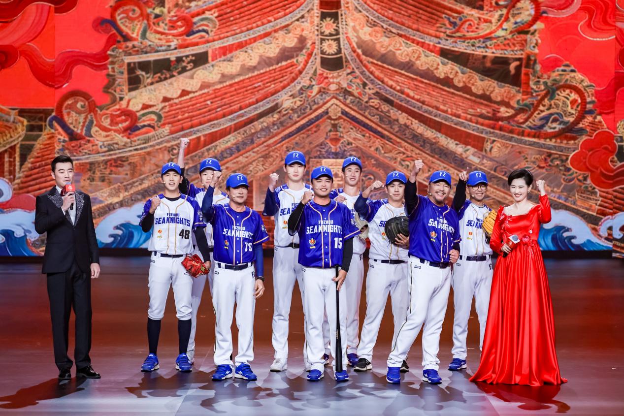 舞台上,飘带屏与开合屏联动流转,闽南红砖古厝的依依烟火、台北101的璀璨霓虹、马六甲鸡场街的熙攘人潮无缝切换,将文化之风穿越海峡、连通四海的画面具象化。台湾主持人杨品骅说,在福州能吃到最爱吃的台北卤肉饭,在台北也能品尝到熟悉的福州鱼丸肉燕。马来西亚主持人郑六月说,每次看到马六甲福建厝屋顶的剪瓷雕和燕尾脊,就感受到故乡祖先的守护。这些细节,绘出了“同风万里”最真实的样貌。当泉州宋江阵、台湾斗阵鼓以及马来西亚二十四节令鼓同台擂响,血脉同频,情感共振。