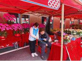 宣传员还主动走进花市各个档口,向经营者耐心讲解垃圾分类要求,引导他们妥善处理废弃花枝、包装材料等,从源头减少垃圾产生,共同维护花市整洁有序的环境。