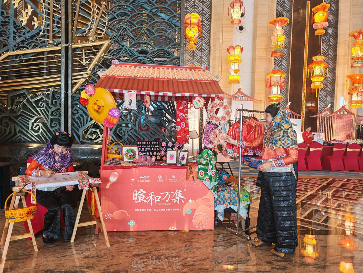 为迎接马年春节,万达酒店及度假村旗下多家酒店推出丰富多彩的文化体验活动,打造“可住、可玩、可感”的沉浸式年味场景。山西潇河新城酒店群则以“籽籽同心·游园图”为主线,打造民族文化长廊,提供免费妆造、民族服饰体验、扎染、投壶、猜灯谜等互动项目,并打造“暄和万集”,汇聚非遗手作、文创产品、地道小吃,成为市民游客打卡热地。一位外地游客感叹:“没想到在酒店里能体验到这么多民族的文化,孩子玩得开心,我们也学到了知识,这个年过得特别有意义。”