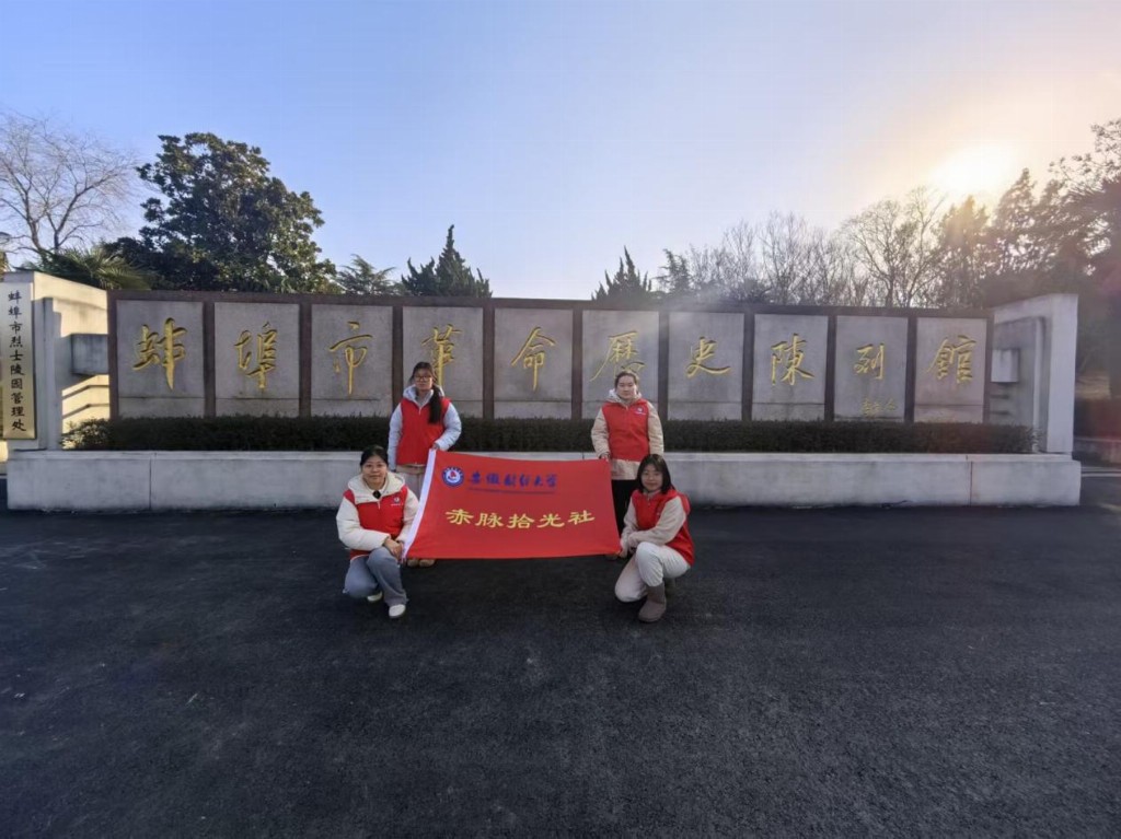 1 月 13 日清晨,寒意未消,赤脉拾光社的成员们已抵达蚌埠市革命历史陈列馆。拾级而上,苍松翠柏环绕的革命烈士陵园庄严肃穆,团队成员在革命烈士纪念碑前整齐列队,低头默哀三分钟。风拂过碑前的鲜花,沙沙声中,那份对革命先辈的崇敬与缅怀,悄然在每个人心底蔓延。